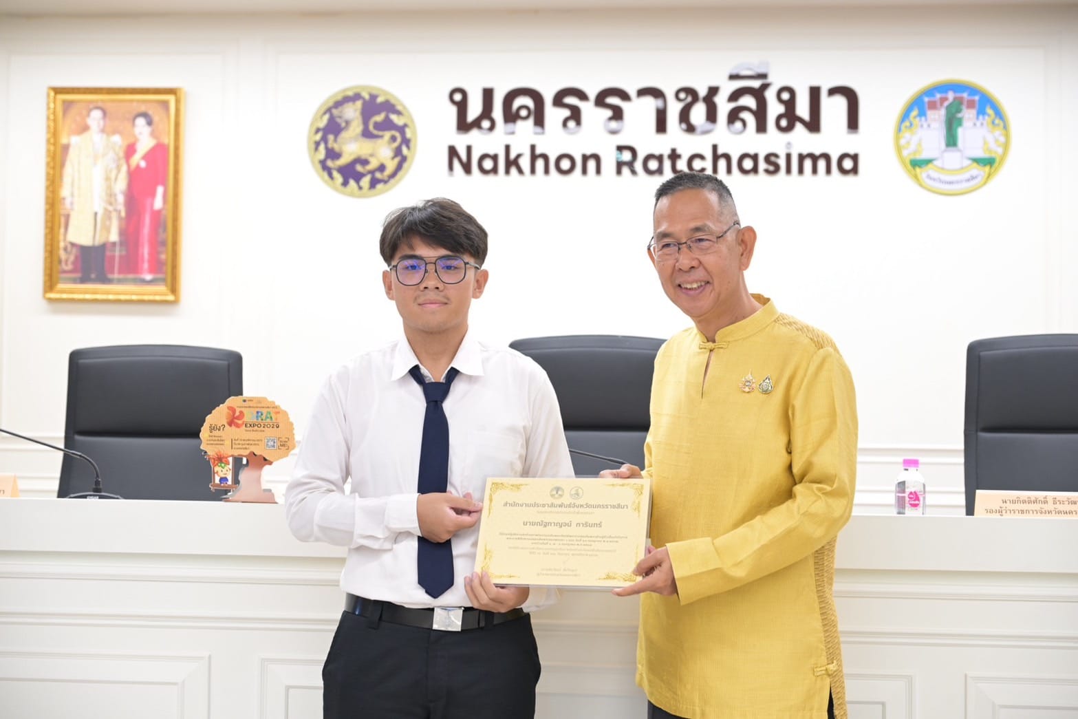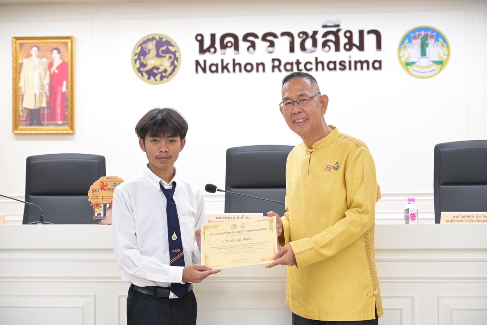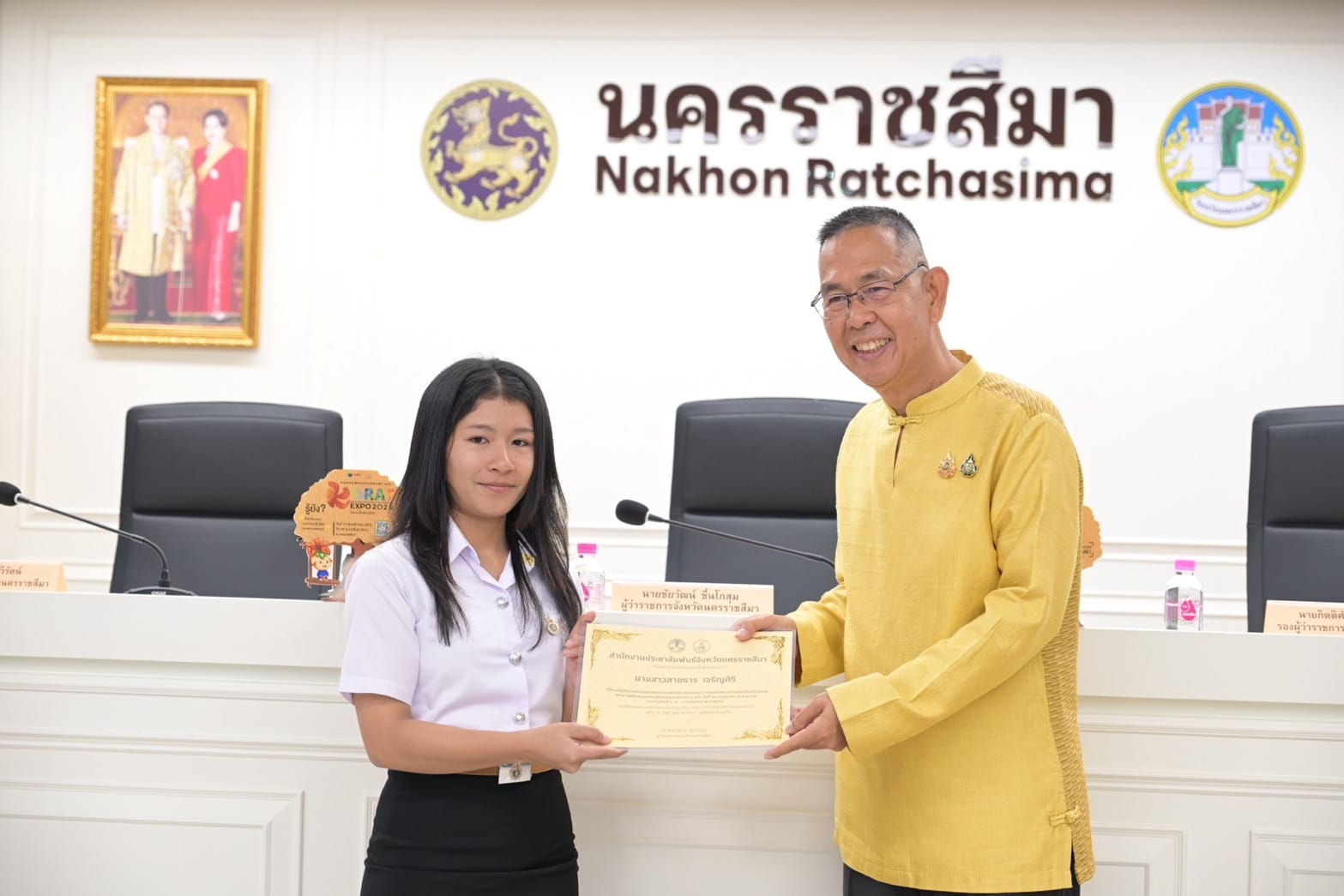 อาจารย์วาริน ชุบขุนทด พร้อมด้วยนักศึกษาสาขาวิศวกรรมสำรวจ จำนวน 3 คน ได้แก่ นายเสริมภูมิ ยิ้มน้อย นางสาวสายธาร เจริญศิริ และนายณัฐกาญจน์ การินทร์ เข้ารับใบประกาศนียบัตร จากงานจิตอาสา "ถ่ายภาพมุมสูงด้วยโดรน" ในการประชุมกรมการจังหวัดนครราชสีมา และหัวหน้าส่วนราชการจังหวัดนครราชสีมา ครั้งที่9/2567